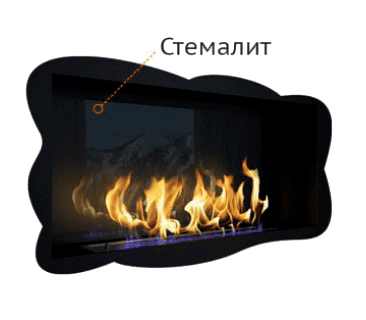 Для придания глубины пламени и усиления эффекта горения, используется-черное стекло – стемалит на внутреннюю поверхность корпуса камина.